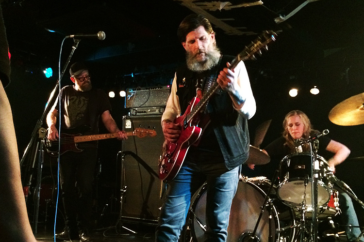 ドローン/アンビエントミュージックの元祖とも言われ、NIRVANAのカートも崇拝していたディラン・カールソン率いるEARTHが奇跡の来日!から2年。初来日まで四半世紀もかかったバンドがたった2年で再来日!前回なんとなく見逃してしまった自分としては有り難い再来日です。仕事を早めに切り上げて新大久保へ。雨や平日、翌日も新代田でライブがあるためか会場の入りは6〜7割でしょうか。以前ELECTRIC WIZARDを観にきた時はもっと人でぎゅうぎゅうでした。この日のオープニングアクトはNEPENTHES。元チャーチのVoとGがいるようで初聴だったので期待していましたがあまりピンときませんでした。EARTHでは運よく最前ゲット。隣の隣にはぴゃうブログの音楽ライター山崎さんがいました(写真左の腕)。数年前の山崎さん主催のドゥーム・イベントでご挨拶させていただいて以来なので覚えてないだろうなと思い声かけず。NEPENTHESの機材が片付け終わるとおもむろにディラン・カールソンが出てきてアンプなどセッティング。黒のカットGジャン(バックパッチはWOLVES IN THE THRONE ROOM、RAINBOWやVENOMのパッチ、DIOとサバスなどのバッジ付)におそらくANGEL WITCHのベースボールT、グレーのカラーデニムにサイドゴアブーツという出で立ち。ヘアスタイルはやや長めの七三、頬ひげがもっさりと生えていて小顔。腕や首まわり、両目の下にもタトゥーが入っていてとてもクール!しかしMCでは声高くてぼそぼそしゃべるのがコミュ障っぽくてかわいらしかったです。オールドスクールなパッチに混ざってWOLVES IN THE THRONE ROOMなんて最近のバンドも織り交ぜたカットGジャンや赤のHagstrom Vikingギターにださカワイイステッカーチューンなどディラン・カールソンのセンスが見えます。準備できたらそのままライブ開始。EARTHはどの曲も10分前後緩急少ないのでここからは長い精神との対話が始まります。ディラン・カールソンは白目を向きながらアルペジオを繰り返しております。自分も目をつぶり音の中に浸ってみようかと思ったんですがせっかく来日しているのでずっとメンバーを見ていました。正直ドローン/アンビエントはいいんだか悪いんだかよくわからずに聴いています。読書しながらとか友人などとワイワイしている時に流すには悪くないのですが、集中して聴こう!というには気怠過ぎます。ライブ行く電車の中でも予習しよと聴き始めてすぐに寝てしまいました。いずれこれの良さを心の底から楽しめる時が来るのでしょうか。EARTH2はバリバリのヘヴィドローンですが最近のEARTHは音圧には頼らずアルペジオを多用し、ひたすら同じメロディーを反復し、麻痺させ、人それぞれのイマジネーションをかき立てる方向へ行ってるように聴こえます。考える事を求められるような音です。なので曲の感じ方が人それぞれになりそうです。自分はだんだんと暗い気持ちになりました。なにか悩みでもあるんでしょうか。映画のサントラを聴いているようでもあり、実際ジムジャームッシュの映画で使われたり、GOLDという映画音楽の全編を制作したりもしています。1曲が長いので終わってみれば2時間ほど。ライブで聴いたら今までと違う何かが得られるかもと期待していましたがそこまで変わる何かはありませんでした。ただディラン・カールソンのように歳をとりたい!と思います。